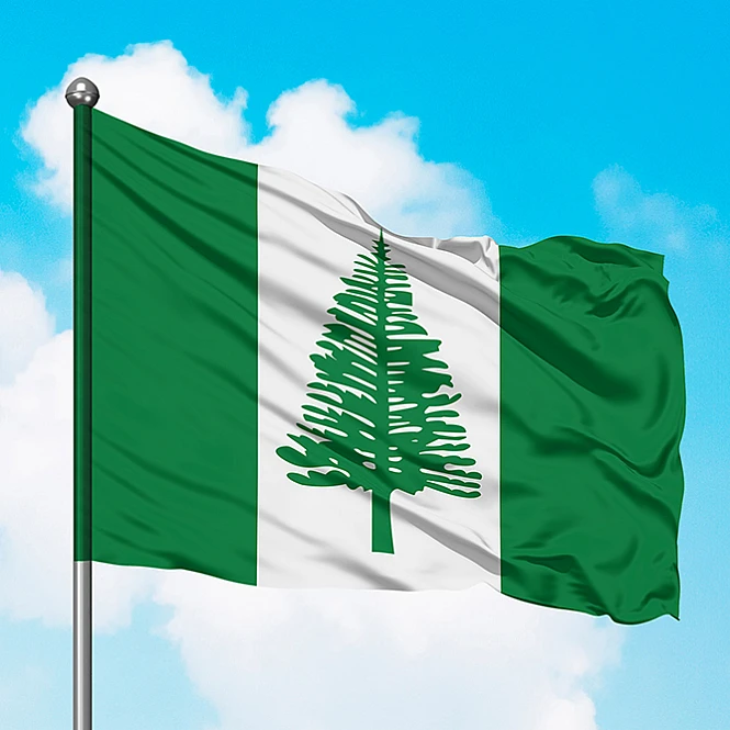 Прапор острова Норфолк (Австралія) прийнято 17 січня 1980 року. Прапор Норфолка є прямокутним полотнищем, що складається з трьох вертикальних смуг зеленого, білого і зеленого кольорів. У центрі білої смуги знаходиться зелене зображення норфолкської сосни, ендеміка острова (цей силует з'явився вперше на гербі Норфолка у 1856 році). Зелені смуги с..