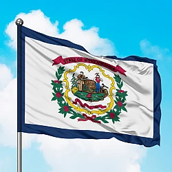 Опис прапора: На білому, з синьою окантовкою, полі зображений герб Західної Вірджинії.