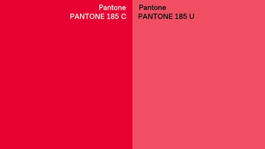 C (Coated) печатается на мелованной (глянцевой) бумаге, а U (Uncoated) - на немелованной (матовой) бумаге. Поскольку один и тот же цвет чернил может по-разному выглядеть на этих двух типах поверхностей, использование двух библиотек позволяет добиться визуального соответствия, выбрав разные номера Pantone.