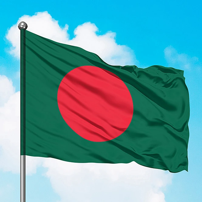 Государственный флаг Бангладеш – утвержден 17 января 1972 года. Флаг представляет собой красный диск на изумрудном фоне. Диск расположен почти в центре флага, хотя самим центром флага является точка перекрестка вертикальной линии, опущенная с 9/20 длинной стороны флага и горизонтальной линии, которая проведена посредине узкой стороны. Радиус диск..