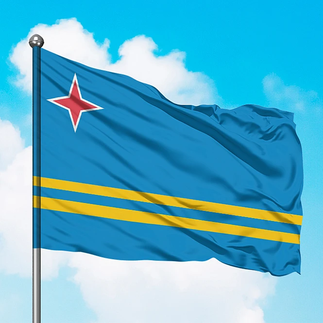 Флаг Арубы – один из официальных символов Арубы, утвержденный 18 марта 1976 года. День принятия флага – главный государственный праздник. Знамя представляет собой светло-синее полотнище. В левом верхнем углу изображена четырехконечная звезда красного цвета с белой каймой. В нижней части флага расположены две золотые полосы одинаковой толщины. Эле..
