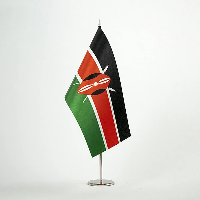 Флаг Кении – один из официальных символов государства Кения. Принят 12 декабря 1963 года. Флаг Кении состоит из трех горизонтальных полос черного, красного и зеленого цветов, разделенных между собой двумя белыми горизонтальными полосами. В центральной части флага находится изображение красно-бело-черного щита африканского народа масаи, а за ним –..