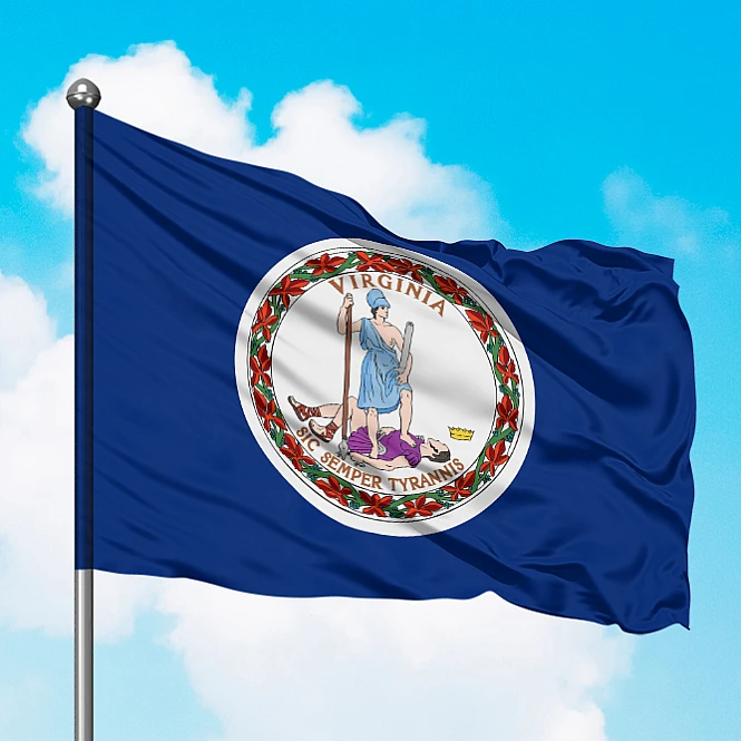 Год утверждения 1861 года. Описание флага: Печать Вирджинии на синем поле. Флаг был утвержден в начале Гражданской войны...