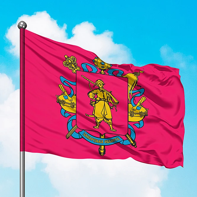 Флаг Запорожской области. Флаг Запорожской области является символом, отображающим историю и традиции области. Наряду с гербом составляет официальную символику органов местного самоуправления и исполнительной власти Запорожской области. Флаг был утвержден 27 июля 2001 года. Автор проекта – Виталий Пилипенко. Флаг области малинового цвета. В центр..