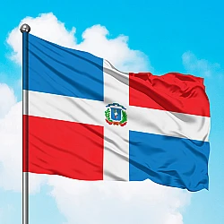 Флаг является прямоугольным полотном, разделенным белым крестом на 4 части (две синего и два красного цвета). Посередине флага изображен герб Доминиканской Республики. Синий цвет символизирует свободу, красный – кровь и независимость, а белый – веру и спасение.