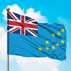 Как и флаги многих других бывших колоний Великобритании, флаг Тувалу — это синий кормовой флаг, в левом верхнем углу которого находится изображение государственного флага Великобритании. Предыдущий флаг (когда острова Тувалу были объединены с островами Гилберта), разработанный в 1932 году постоянным представителем британской колонии Артуром Гримблом, также базировался на флаге Великобритании, но имел на левой нижней части изображение герба Тувалу (тогда архипелаг назывался «Островами Эллис»).