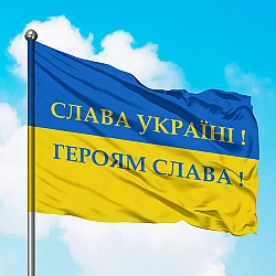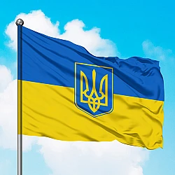 Флажок Украины с Гербом и надписью Добрий вечір ми з України
