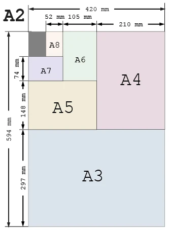 Самая популярная серия - Серия А. Этот формат используют в делопроизводстве, в учебе (знакомый со школы «стандартный» лист А4), в печати и других сферах жизни. Базовым форматом серии является А0, это лист размером 841х1189 мм и площадью 1 м². Следующая ступенька в градации – А1, его площадь в два раза меньше А0, то есть 0,5 м². А2 вдвое меньше формата А1 и т.д. Несмотря на уменьшение площади листа бумаги, соотношение размера ширины и высоты листа всегда остается стандартным.